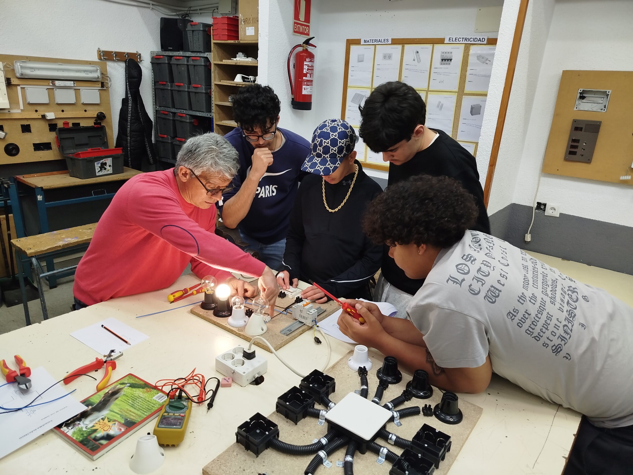 En este proyecto, el personal del CBM recibe formación en carpintería, electricidad, mecánica de motos y peluquería por parte de los alumnos de programas ACE (Aula de Compensación Educativa) y GES (Grupos Específicos Singulares) del centro educativo Ciudad Joven de Vallecas. A cambio, les enseñamos ciencia.