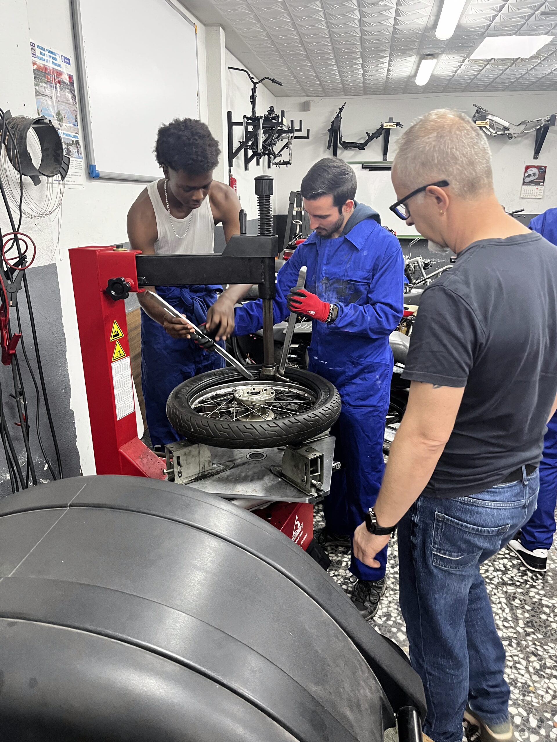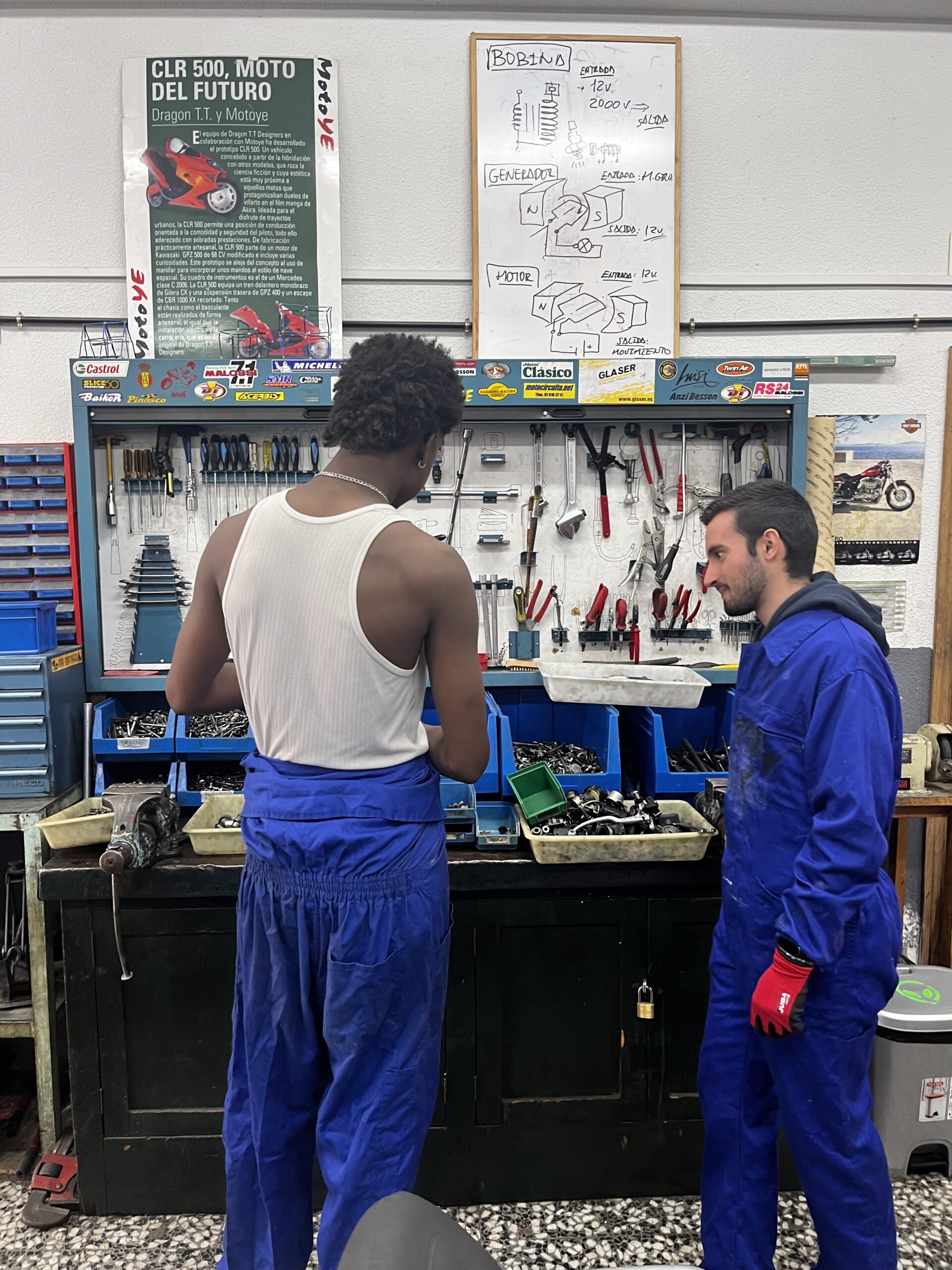 En este proyecto, el personal del CBM recibe formación en carpintería, electricidad, mecánica de motos y peluquería por parte de los alumnos de programas ACE (Aula de Compensación Educativa) y GES (Grupos Específicos Singulares) del centro educativo Ciudad Joven de Vallecas. A cambio, les enseñamos ciencia.