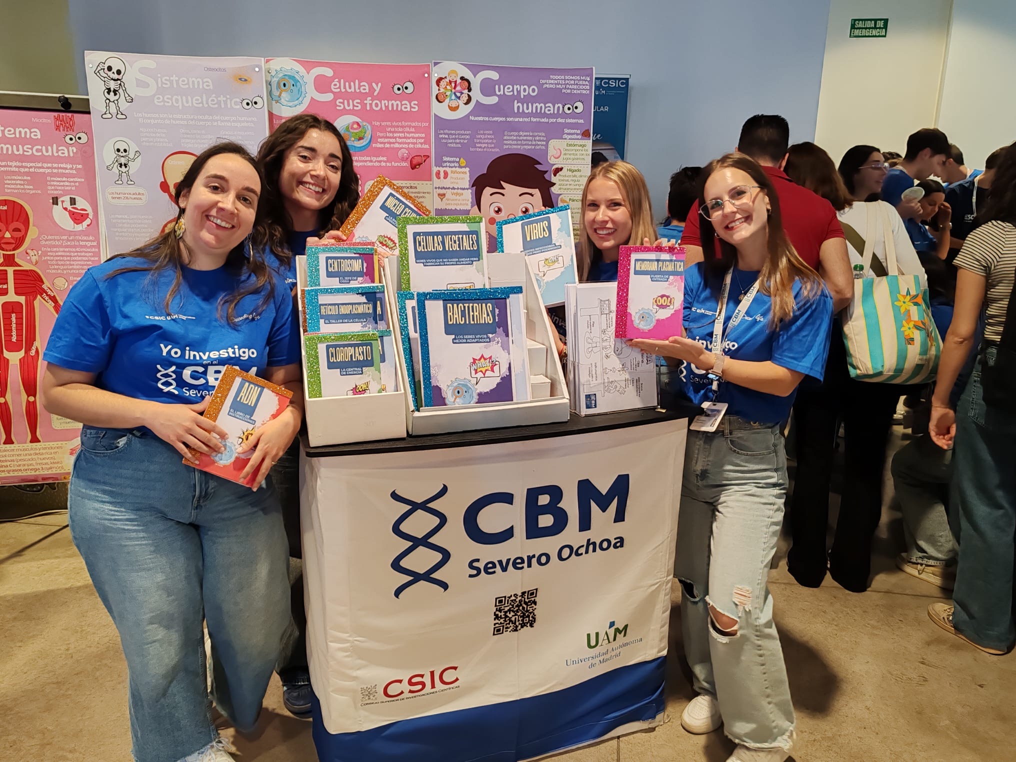 El CBM participó con un stand en el que los visitantes pudieron ver la estructura de las células con modelos en tres dimensiones y un biombo gigante con imágenes de la célula animal, vegetal y una procariota, que acompañamos de unos “libros” con explicaciones sobre los distintos orgánulos de la célula e imágenes de microscopía electrónica de los mismos, que fueron un éxito entre los niños gracias al brillo (literal) que desprendían y a nuestro encantador personaje “Lita Celulita”; descubrieron algo más sobre sus cuerpos con varios posters en tela llenos de color e información sorprendente; pudieron experimentar el poder antioxidante de las frutas y ver un cerebro a la vez que descubrían detalles importantes sobre su funcionamiento.