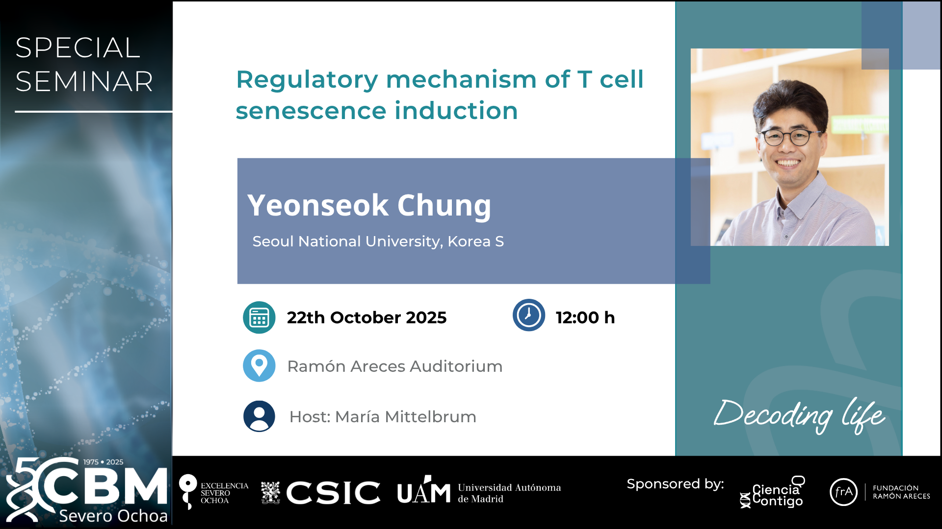 Andrés París Muñoz (Madrid, 1995) es Graduado en Bioquímica por la UAM y doctor en Biociencias Moleculares por la UAM con una beca predoctoral de “laCaixa”. Además, ha disfrutado de una de las becas del Ayuntamiento de Madrid para hacer una estancia durante el curso 2019-2020 en la histórica Residencia de Estudiantes de Madrid. En lo referente a su faceta científica, actualmente ocupa un puesto como investigador postdoctoral en la Unidad Mixta IdiPAZ-CNIO, desarrollando inmunoterapias avanzadas celulares CAR-T para el cáncer y algunas enfermedades autoinmunes. Es autor de cuatro poemarios, entre ellos, DESDE EL AZUL DEL MUNDO (II Premio Internacional de Poesía Joven José Antonio Santano, 2022)y LA HORA PERDIDA (Premio de Literatura de la Universidad Complutense de Madrid 2024). Parte de su obra poética, orientada también como medio para divulgar conceptos científicos, ha sido publicada en la revista Biochemistry and Molecular Biology Education. Además, ha obtenido otros galardones, entre ellos, el Primer Premio de Poesía Lanzadera de poesía del Ayuntamiento de Madrid 2017. En 2019, 2020 y 2022 fue finalista del Certamen de Jóvenes Creadores del Ayuntamiento de Madrid.