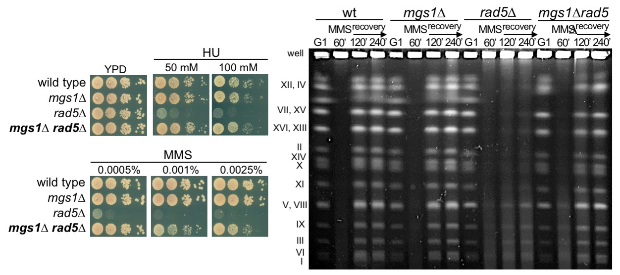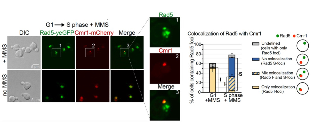 El objetivo de nuestro grupo es contribuir al conocimiento de los mecanismos que las células eucariotas utilizan para mantener la estabilidad del genoma durante la replicación cromosómica, especialmente bajo condiciones de daño en el DNA o estrés replicativo. Estudiamos cómo las rutas de reparación del DNA, de tolerancia al daño en el material genético y de checkpoint, junto con diferentes proteínas como helicasas y nucleasas, facilitan la replicación cromosómica en presencia de lesiones en el DNA o de perturbaciones durante la replicación. Analizamos la contribución de estas proteínas a la integridad y función de las horquillas de replicación, su regulación y su importancia para la viabilidad celular y la prevención de la inestabilidad genómica. Los principales aspectos de estos procesos están conservados evolutivamente, lo que nos permite estudiarlos en detalle utilizando la levadura Saccharomyces cerevisiae como organismo modelo de trabajo.