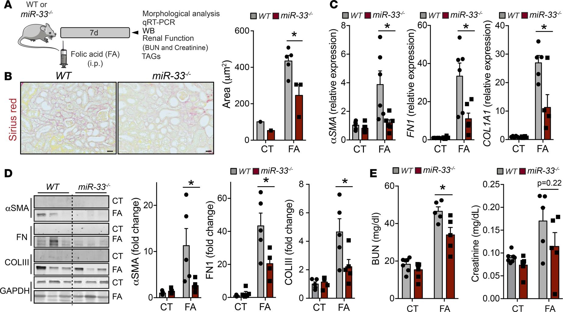 Genetic deficiency or pharmacological inhibition of miR-33 protects from kidney fibrosis