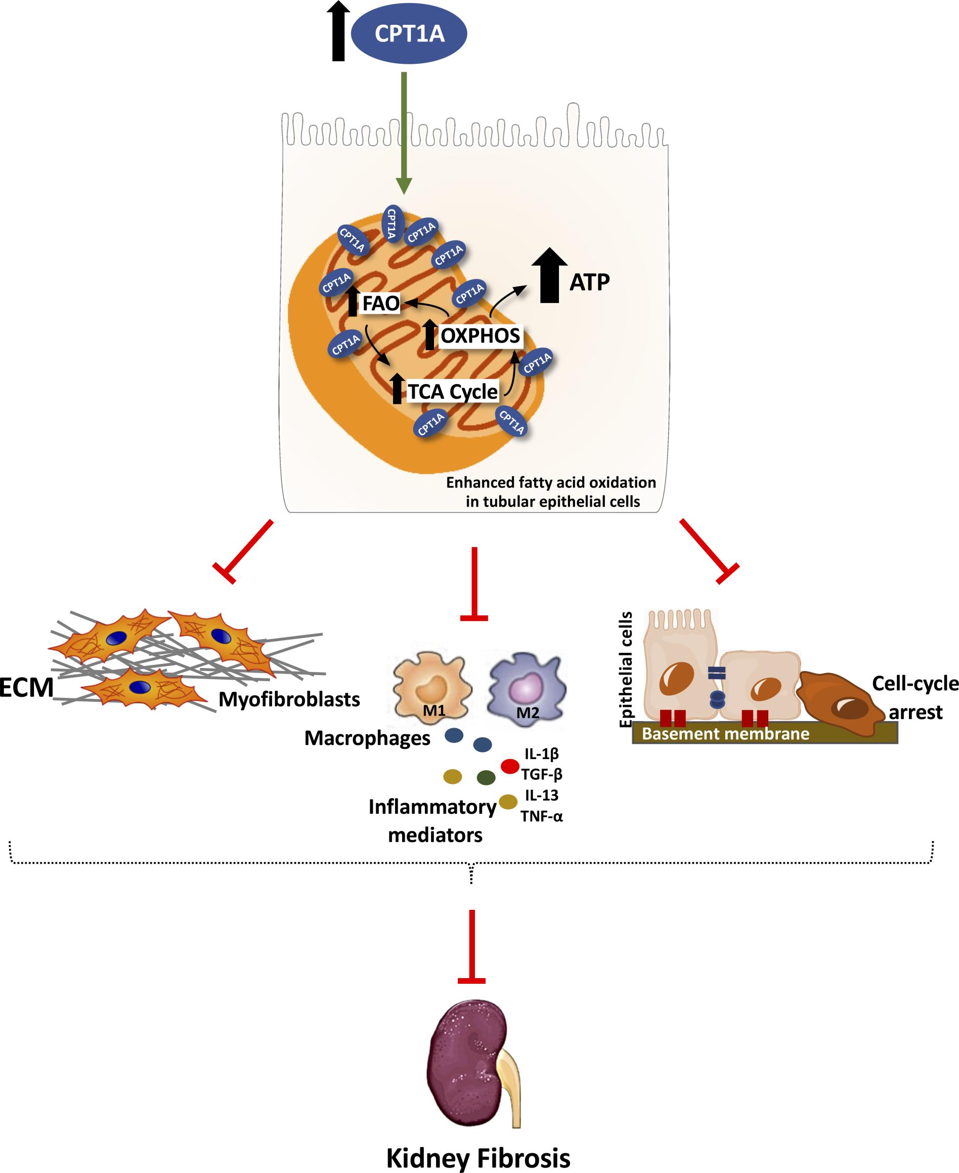 Nuestro objetivo es prevenir, aplazar o revertir la fibrosis en el riñón mediante la comprensión de los cambios metabólicos subyacentes asociados con la fibrosis renal. Para ello utilizamos modelos animales con ganancia de función específica para enzimas críticas implicadas en la oxidación de ácidos grasos, como la carnitina palmitoiltransferasa 1A (CPT1A). Estos estudios se complementan con modelos celulares y enfoques bioquímicos dirigidos al estudio de la biogénesis y función mitocondrial. Hemos descubierto que la sobreexpresión de la enzima Cpt1a en los túbulos renales promueve una oxidación mejorada de los ácidos grasos, restaura la homeostasis mitocondrial y protege de la fibrosis. Además, hemos identificado microARN específicos que son importantes para regular la génesis de la fibrosis al dirigirse a rutas metabólicas específicas.