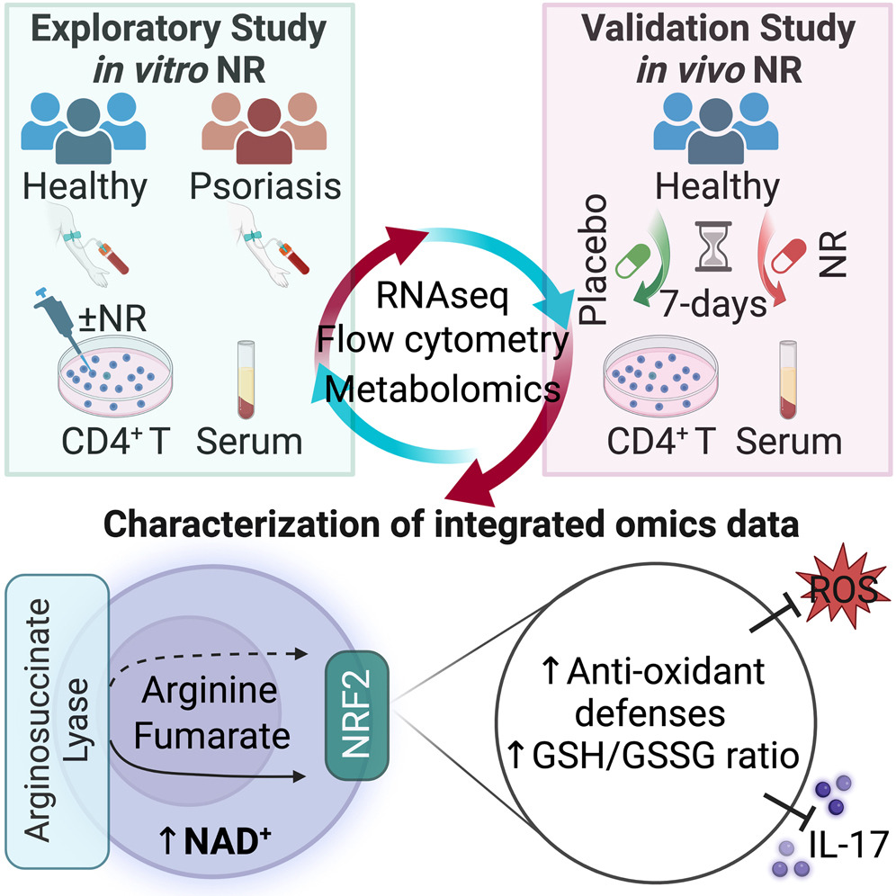 Boosting NAD preferentially blunts Th17 inflammation via arginine biosynthesis and redox control in healthy and psoriasis subjects