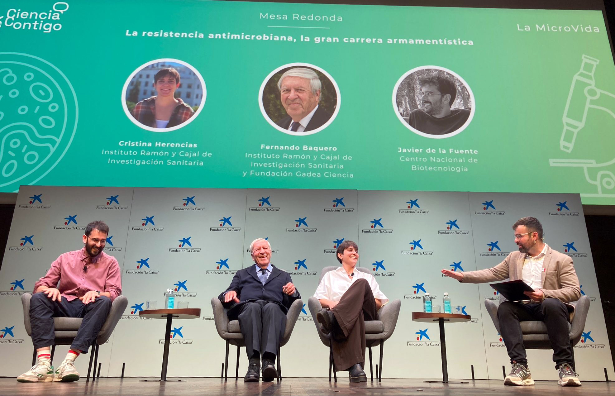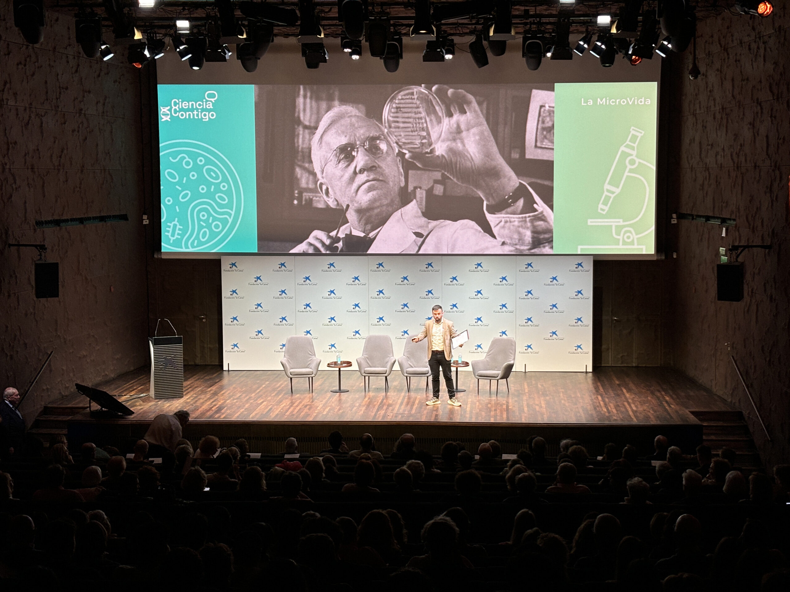 In 2024 the theme of the event was ‘The MicroLife’ and the presentations focused on the importance of microorganisms (bacteria, viruses, etc.) and their impact on various areas of our daily life, society and technology. The event included several speakers in different formats: short talks and round tables of three speakers each. Ricardo Moure was the master of ceremonies for the entire event.