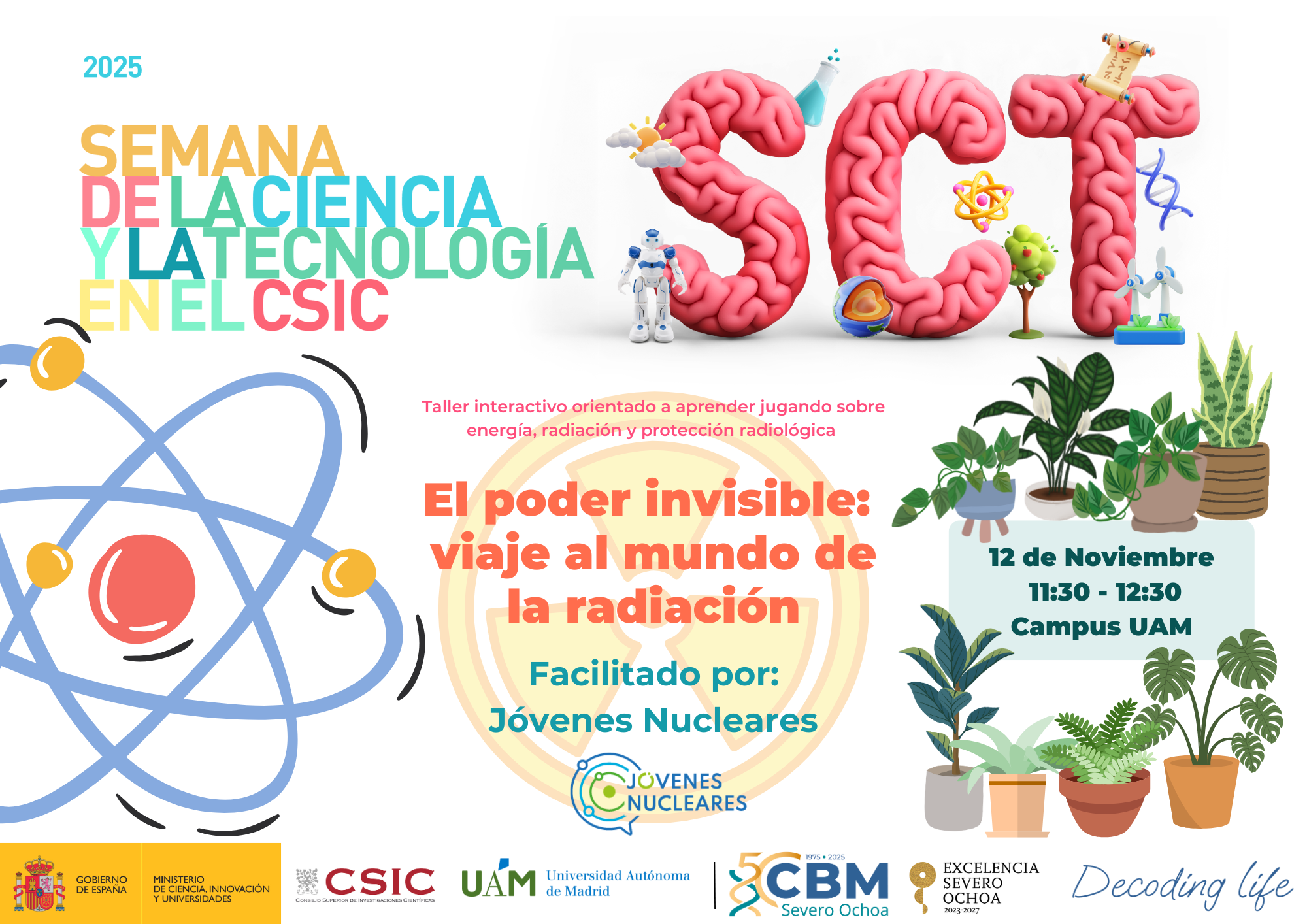 Our outreach activities as part of Science Week 2025 include: in-person and online talks, interactive workshops for primary and secondary school students, and an open house at the CBM for educational centres. This year, we have partnered with the Jovenes Nucleares association of physics students for some of these activities.
