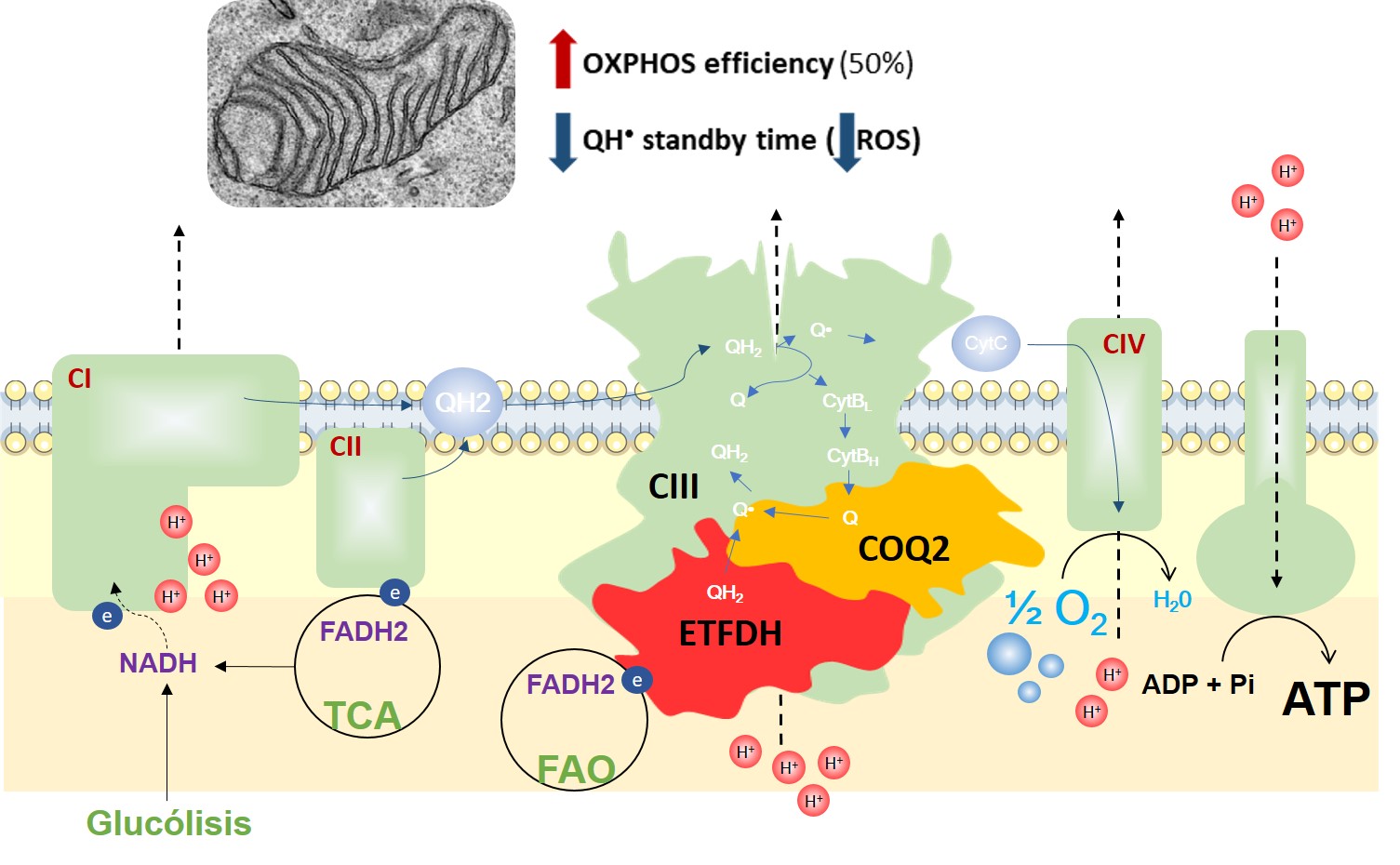 One of the main goals of my research line, supported by PID2022-136738OB-I00 national funding and Fundación Ramón Areces, is to further investigate mitochondrial metabolism in pathophysiology. Using two conditional and tissue-specific mouse models with impaired mitochondrial activity (dysfunctional oxidative phosphorylation mice, LowOXPHOS mice; dysfunctional fatty acid oxidation mice, LowFAO mice), our research group is elucidating how different mitochondrial dysfunctions, environmental factors, and diets impact metabolism at the cellular, tissue, and organismal levels. We aim to identify the aspects of mitochondrial activity that limit cell homeostasis and understand which products of metabolism are essential for proper organism function, as well as how cells obtain or transform them in physiological tissue environments. This knowledge is crucial for exploiting mitochondrial metabolism for therapeutic purposes in the field of cancer and ageing.